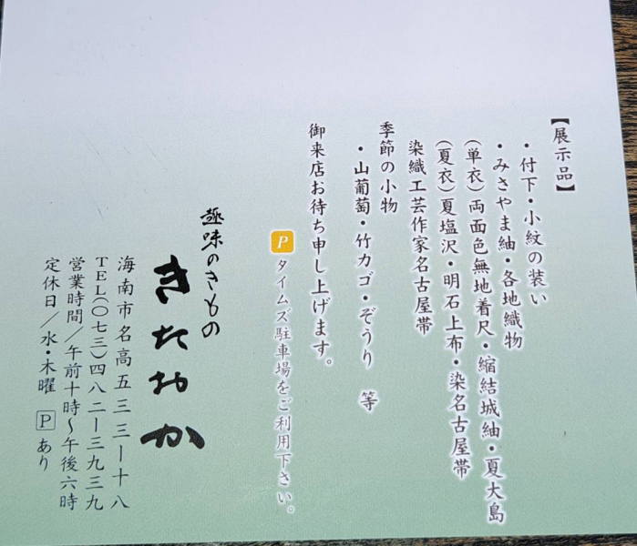 海南市の呉服店 きたおか